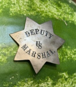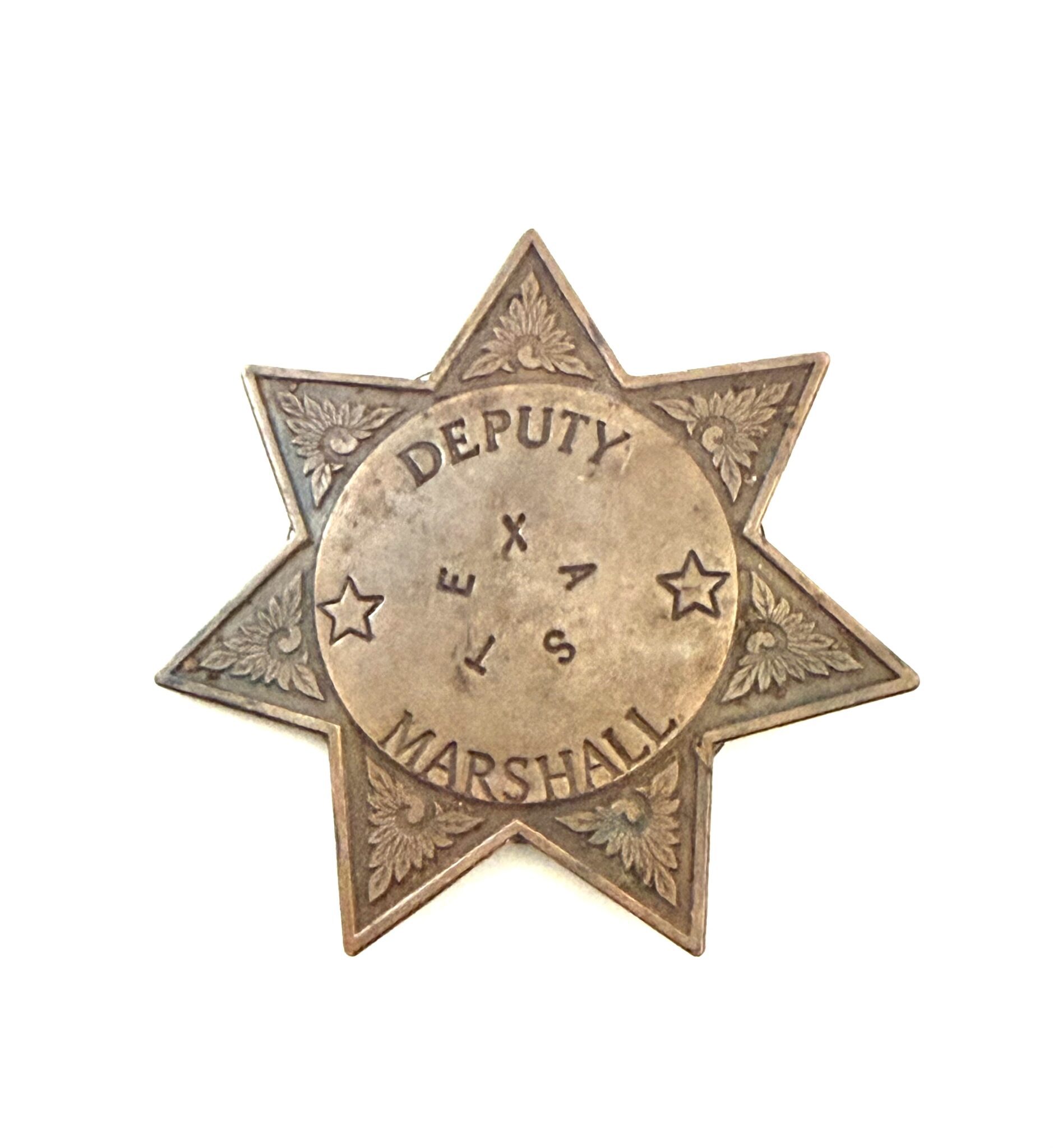 Antique Badges Page 3 1800’s WELLS FARGO & CO. LOCK. Rare Wells Fargo & Co. lock with key and original chain. Very rare to have the original chain on lock. Works well. $2795 RARE ANTIQUE PIE PLATE DEPUTY U.S. MARSHAL BADGE. Scarce antique pie plate design Deputy U.S. Marshal badge. $2250 1800’s UNIQUE CONSTABLE BADGE. Unique design 1800’s Constable badge. $575 UNITED STATES MARSHAL BADGE & 56th INAUGURATION PRESIDENT OF THE UNITED STATES BADGES. Collectible badges U.S. Marshal Service and 56th Inauguration of the President of the United States. Washington DC. $495 TEXAS RANGER MEDALLION. Texas Ranger Medallion with TEXAS spelled out around the star. $175 UNITED STATES MARSHAL HAT BADGES. United States Marshal hat badges and coin. $275 UNITED STATES MARSHAL PATCH COLLECTION. Collection of United States Marshal patches and various others. $475 ANTIQUE TEXAS DEPUTY MARSHAL BADGE. Old 7-point Texas Deputy Marshal Badge. $1495 Detective St. Louis Mo. Badge PREDATES CIVIL WAR. Rare Early Badge St. Louis Mo. Predates the Civil War. $1875 RARE ADAM’S EXPRESS Co. TRAVELERS CHECK SIGN. Rare Adam’s Express Co. Travelers check and Money order sign. Measures 7”x 2” wide. $895 RARE MAKER ”DILGES & CLUST” FAITHFULL SERVICE NEW YORK WAR MEDAL. Rare maker marked DILGES & CLUST Faithful Service war medal New York. $695 VINTAGE CHISHOLM SCHOOL PATROL BADGE. Old CHISHOLM SCHOOL PATROL Badge maker marked. $375 OLD PINKERTON RAILROAD POLICE BADGE. Old Pinkerton Railroad Police Badge in good condition. $595 VINTAGE BROOKS DETECTIVE AGENCY BADGE. Antique Brooks Detective Agency Badge. $350 OLD JAMES P. MANGAN DETECTIVE AGENCY BADGE. Vintage James P. Mangan detective agency badge. $495 ANTIQUE BALTO. MD. DETECTIVE BUREAU BADGE. Old Fidelity Detective Bureau BALTO. MD. Badge. $350 ANTIQUE INGLEWOOD CALIFORNIA POST OFFICE BADGE. Rare Post Office badge from Inglewood California. Horse in full stride. Badge is missing pin back. $395 UTAH UNITED STATES MARSHAL BADGE. Old Deputy United States Marshal of Utah Badge. $1695 ZUNI INDIAN GAME RANGER BADGE. Rare Zuni Indian Game Ranger Badge. $1895 ANTIQUE CONSTABLE BRADFORD, PA BADGE. Circa 1800’s Constable Bradford, Pa Badge. $595 HONORARY TEXAS RANGER BADGE. Honorary Texas Ranger Badge maker marked Smith & Warren U.S.A. $875 AETNA CHEMICAL COMPANY OF CANADA GUARD BADGE. Old Aetna Chemical Company of Canada Guard Badge. $395 1925 NEW ORLEANS SPECIAL POLICE BADGE. Maker marked New Orleans Stamp & Stencil Co. Special Officer Badge circa 1925 missing pin. $595 GREAT STARS & BARS DEPUTY U.S. MARSHAL BADGE. Vintage Beautiful stars & bars Deputy U.S. Marshal Badge. $2795 DEPUTY SHERIFF WAYNE COUNTY G.H. KIRCHNER BADGE. Maker marked Deputy Sheriff Wayne County G.H. KIRCHNER Badge. $895 24 KARAT SERGEANT MIAMI POLICE FLA. BADGE. Maker marked Blackinton 24 kt Karat Clad Miami Police Sergeant Fla. Badge. $1695 ANTIQUE DETECTIVE POST’S BADGE. Old Detective Post’s Badge in good condition. $85 ERIE COUNTY SPECIAL DEPUTY SHERIFF BADGE. Old Special Deputy Sheriff Badge Erie County. $325 U.S. DEPUTY MARSHAL BADGE. Antique U.S. Deputy Marshal Badge maker marked LA.STAMP. $1495 RARE PERSONAL STAFF BAILIFF BADGE. Maker marked C.H. HANSON Co. CHICAGO Badge. Court of Chicago. $650 SHAWNEE COUNTY KANSAS DEPUTY SHERIFF BADGE. Maker marked C.D. REESE 57 WARREN ST. N.Y. Special Deputy Sheriff Shawnee County Kansas Badge. $825 OLD SPECIAL POLICE BADGE. Old 6-pointed Special Police Badge. $295 DEPUTY SHERIFF STEVENS CO. BADGE. Maker marked PACIFIC STAMP WORKS SPOKANE. Deputy Sheriff Stevens Co. Badge. $995 ANTIQUE LAUREL CITY MARSHAL BADGE. Maker marked NORTHWESTERN STAMP WORKS. ST. PAUL MINN. Laurel City Marshal Badge. $1795 CITY MARSHAL STATE OF IOWA BADGE. Old City Marshal Badge State of Iowa. $1595 LINN CO. KANSAS DEPUTY SHERIFF BADGE. Maker marked W.S. DARLEY CHICAGO. Linn Co. Kansas Deputy Sheriff Badge. $1295