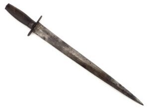 Old British commando knife & sheath. Measures 11 inches long. $375