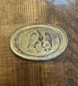Old military field box with Eagle box plate. Dovetail construction on each side of box. Measures 9 1/2”x 14 1/2”. $750