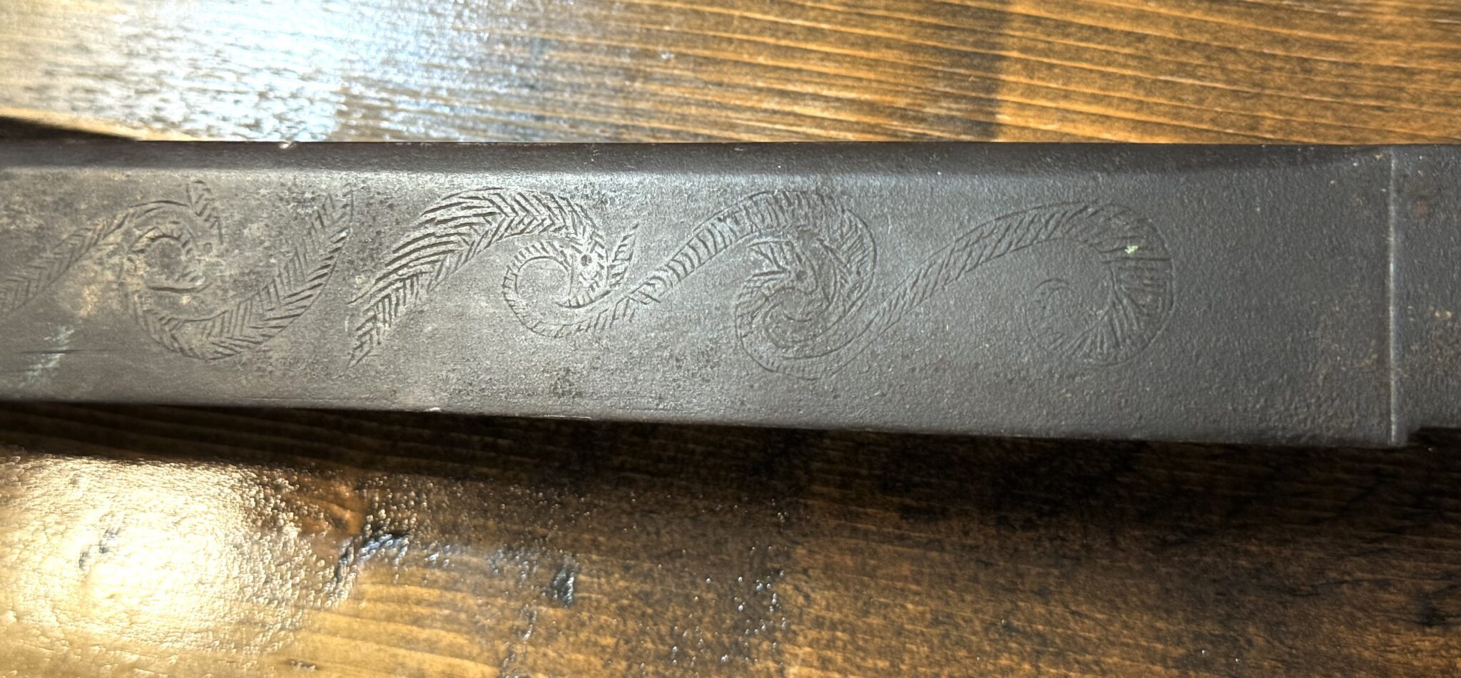 1700’s BOARDING CUTLASS CHISELED SERPENTS.Rare 1700’s boarding cutlass with hand chiseled serpents. Sword measures 27-3/4 inches overall with a 22-1/2-inch blade. $2495 |