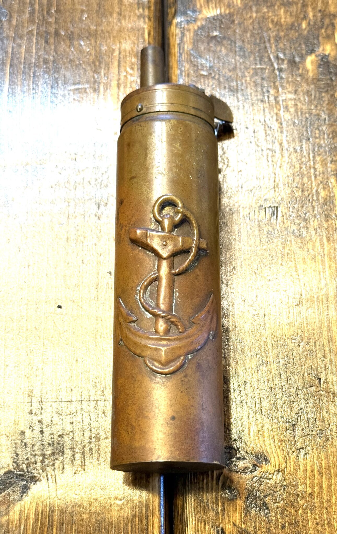 RARE CIVIL WAR NAVAL POWDER FLASK.Rare Civil War Naval powder flask. These Naval powder flasks are not often seen. It is in good working condition. $2550 |