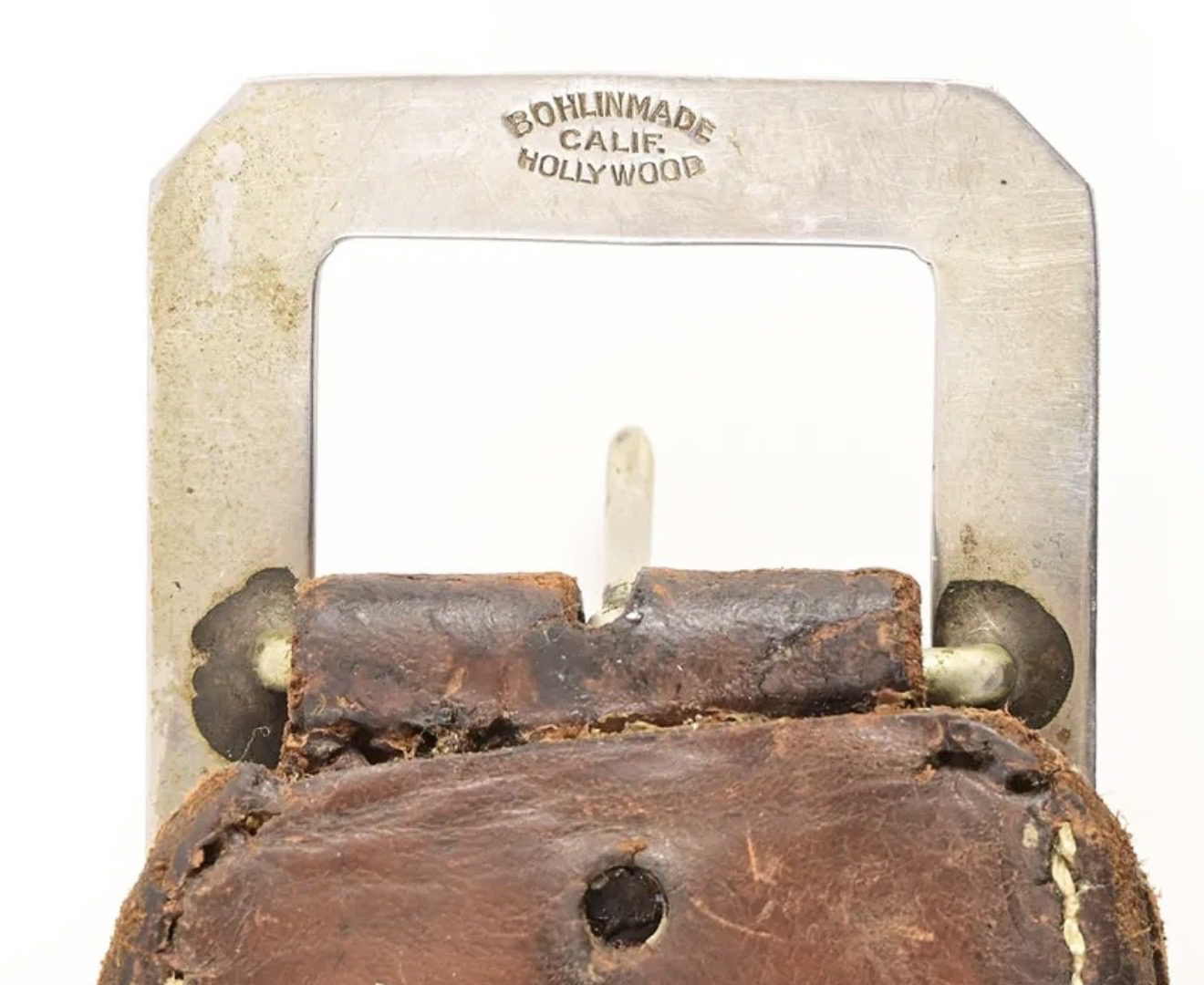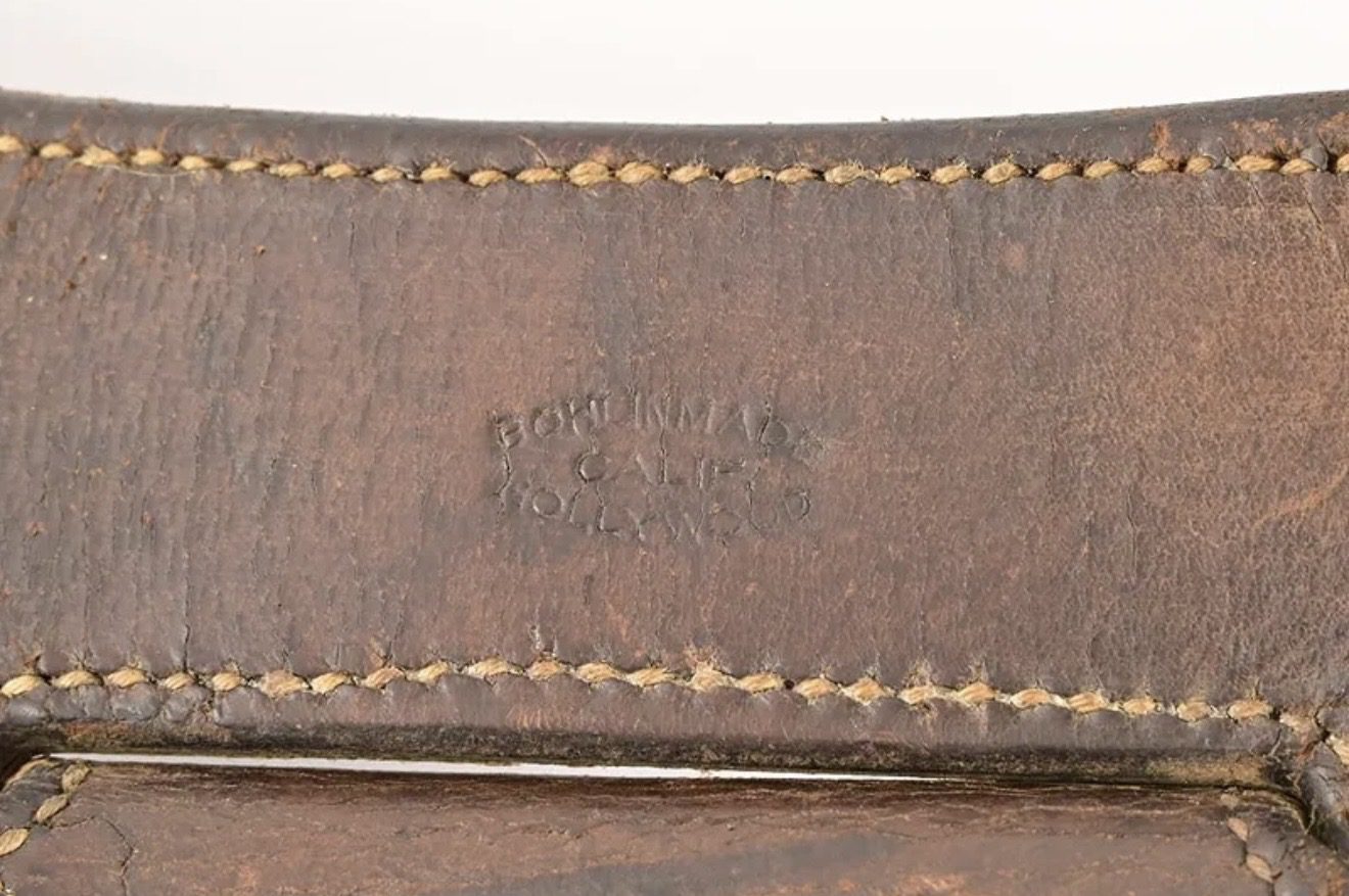 Antique Bohlin gun rig maker marked on belt and holster. Fits Colt Single Action revolver 5-1/2-inch barrel 44/40 or 45 caliber loops. A very unique holster with spring on leather to hold hammer in place. Gun doesn’t’ go with rig. $5250