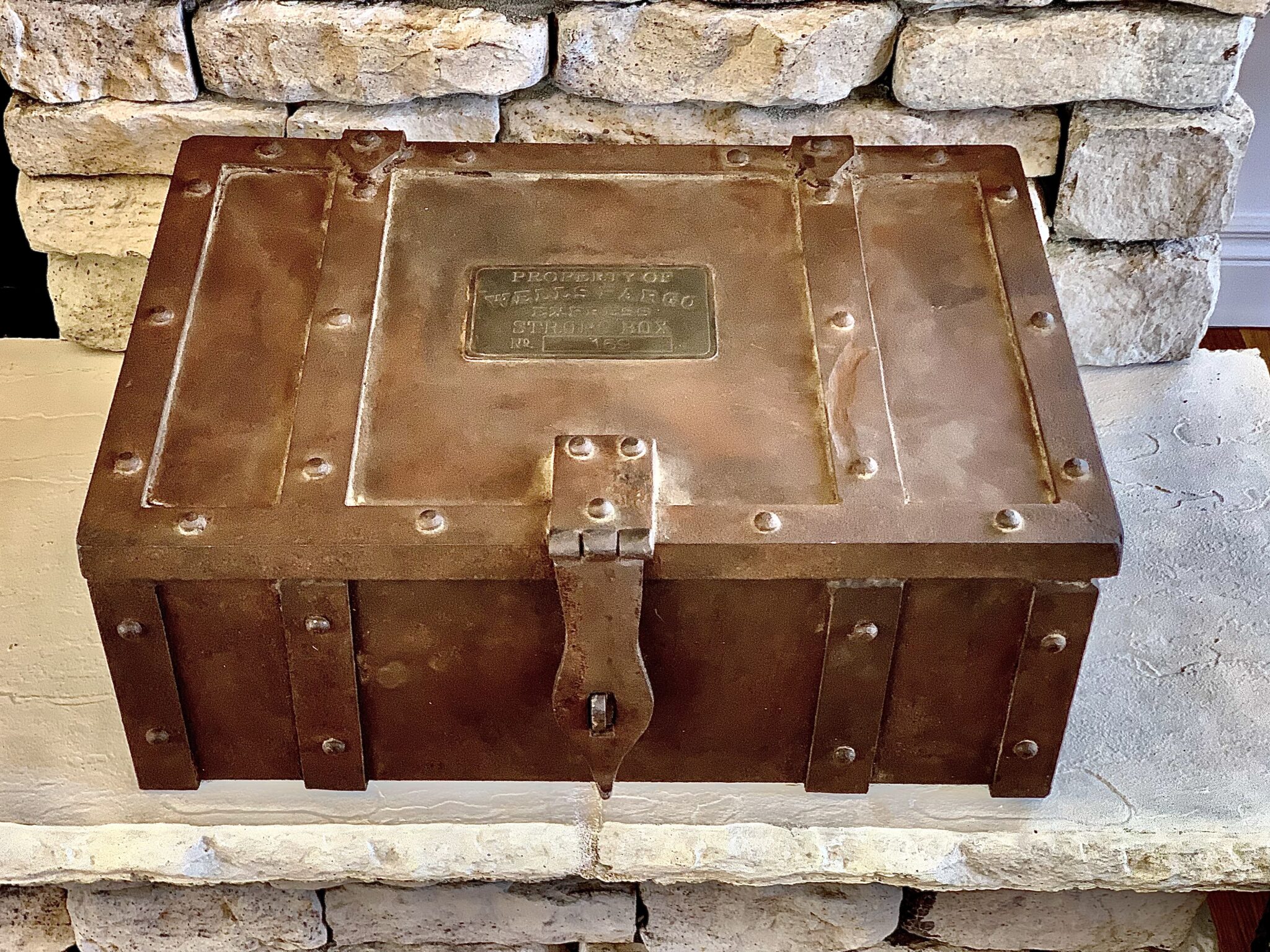 Nice Wells Fargo & Co. strongbox made of iron. It would have carried bars of gold and silver. It would have taken dynamite to open it. Measures 14”x 19”x 9” $1250