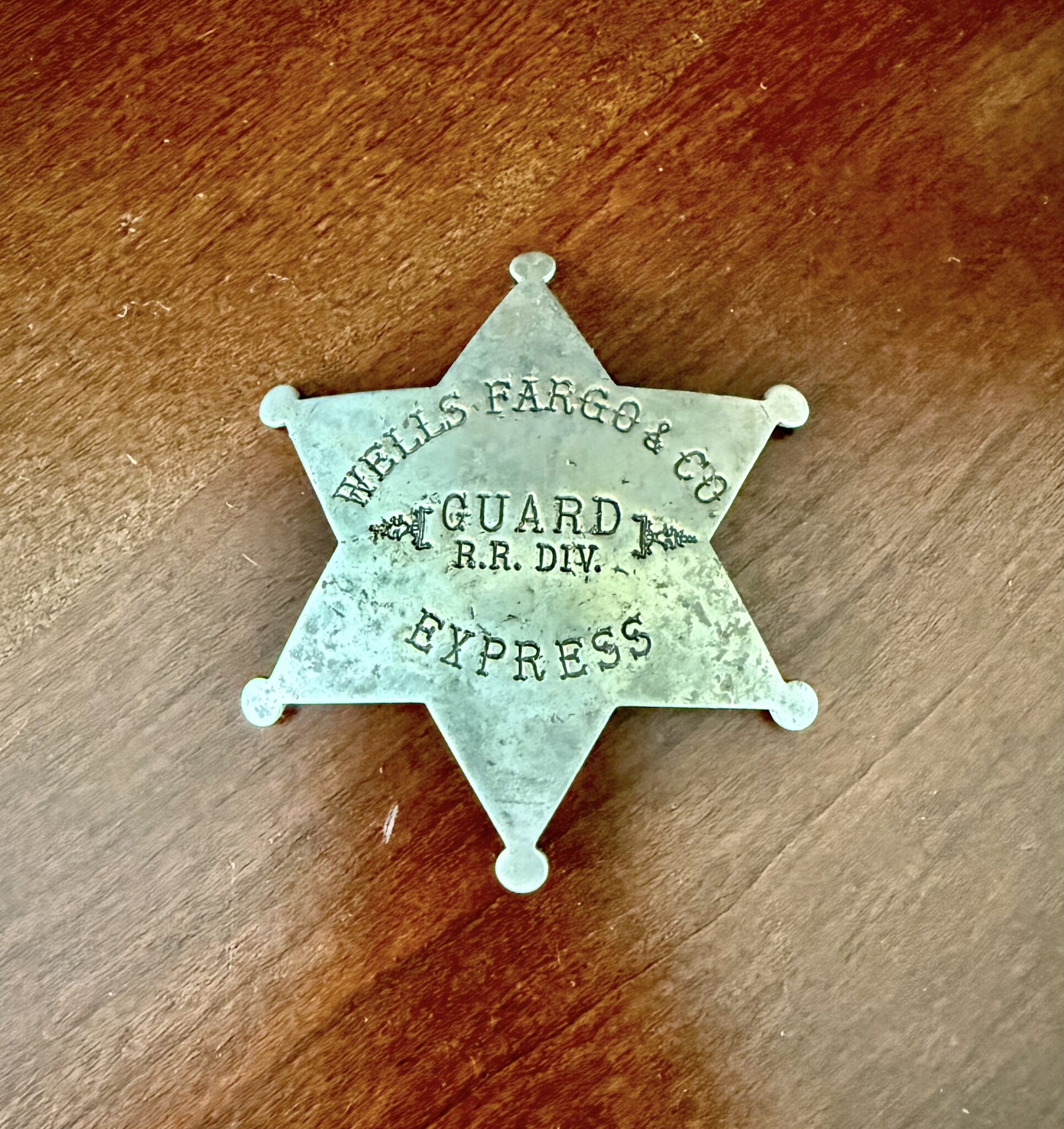 Old Wells Fargo & Co Express railroad guard badge. $1295