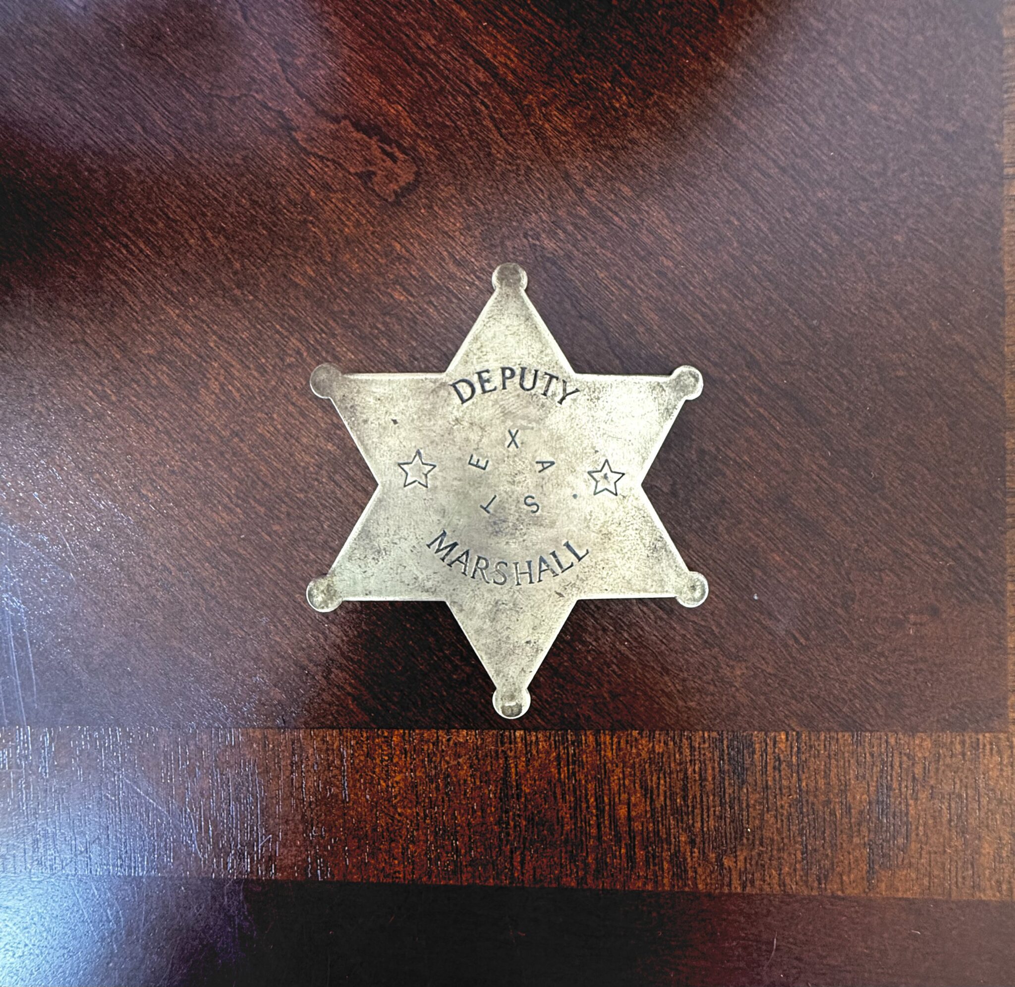 Rare Misc Items Page 17 TEXAS DEPUTY MARSHAL SILVER BADGE. Old 6-pointed silver star Texas Deputy Marshal Badge. $895 FAMOUS OKLAHOMA 101 RANCH SHOW OUTFIT. The famous Oklahoma 101 ranch show beaded complete outfit. A very nice complete outfit in good condition. POR WW2 GERMAN BRASS KNUCKLES. Rare WW2 German brass knuckles with nice design. $1595 MINT 1908 COLT 25 CALIBER PISTOL. Very nice mint condition case color 1908 25 caliber Colt pistol. $2550 OLD SAMURAI JAPANESE SWORD. Vintage Japanese Samurai sword with writing on blade. Blade measures 26 1/2”. $675 OLD WOOD CARVING LIZARD. Old wood carving of Lizard. $125 CONFEDERATE COPPER POWDER FLASK CS. A rare confederate CS copper powder flask measures 6 1/4 inches long and 3 inches wide. $525 TWO HANDLED VASE DEPICTING RACE HORSE. Two handled vase measuring 10 inches tall. Depicting race horses. $250 SIGNED CHINESE IVORY MAN. Old signed Ivory of Chinese man. $275 SIGNED IVORY SNAKE & MONKEY. Old signed Ivory of Snake and Monkey. $295 O.V.I CIVIL WAR BUCKLE. Ohio Vol Inf belt buckle with two hooks missing. $550 WW11 HAT. 1940 WW11 green hat with ccc on front of cap. $275 IVORY SNUFF BOTTLE. Old Ivory snuff bottle. $350 SOUTH CAROLINA CIVIL WAR CONFEDERATE BUCKLE. Nice Civil War SC-South Carolina Confederate buckle. $1995 PEACOCK SCRIMSHAW IVORY SNUFF BOTTLE. Old Ivory snuff bottle scrimshaw Peacock’s. $650 SIGNED IVORY MONKEY & SNAKE. Signed Ivory Monkey & Snake. $495 IVORY SNUFF BOTTLE SCRIMSHAW NUDE WOMEN. Old Ivory snuff bottle scrimshaw of bird and naked women on other side. $550 ANTIQUE SILVER & COPPER CUP. Very old silver & copper made cup measures 4.5 inches tall. Cup is nicely engraved and probably came off of an old ship. $495 ERPHILA ART POTTERY. Erphila Art Pottery Czechoslovakia platter in good condition. $350 ANTIQUE GOLD PEN PENCIL. Nice engraved gold pen pencil in great condition. $495 OLD COPPER DEER CUFF. Old copper cuff with two large Bucks grazing. $225 ANTIQUE CAST IRON TRACTOR. Old cast iron tractor with farmer driving. Measures 7 inches long and 4 inches tall. $450 OLD CAST IRON EAGLE WALL POCKET. Old cast iron Eagle wall pocket measures 8.5 inches tall. $375 OLD PERFUME GLASS WHISTLE. Old glass perfume bottle made into whistle. $250 GEORGE & MARY WASHINGTON SILVER CASE. Antique silver case hallmarked depicting George & Mary Washington. $595 1800’S PAINTED PORCELAIN JEWELRY BOX. Circa 1800’s porcelain jewelry box in good condition. $325 WYATT EARP DODGE CITY PHOTO. Rare 2nd generation cabinet card photo of Wyatt Earp, Bat Masterson and other gun fighters of Dodge City. Photo was recopied circa 1900. $2550 OLD FILIGREE BELT BUCKLE. Nice filigree belt buckle no maker mark. $225 OLD FANCY ENGRAVED BOX. Unique and fancy engraved box with original key. Box measures 9.5” x 7”. $475 POWDERHAM CASTLE COPPER BRONZE INK WELL & LETTER OPENER. This copper bronze ink well & letter opener came out of the Powderham Castle 19th century. The letter opener is engraved Powderham Castle Exeter. $895