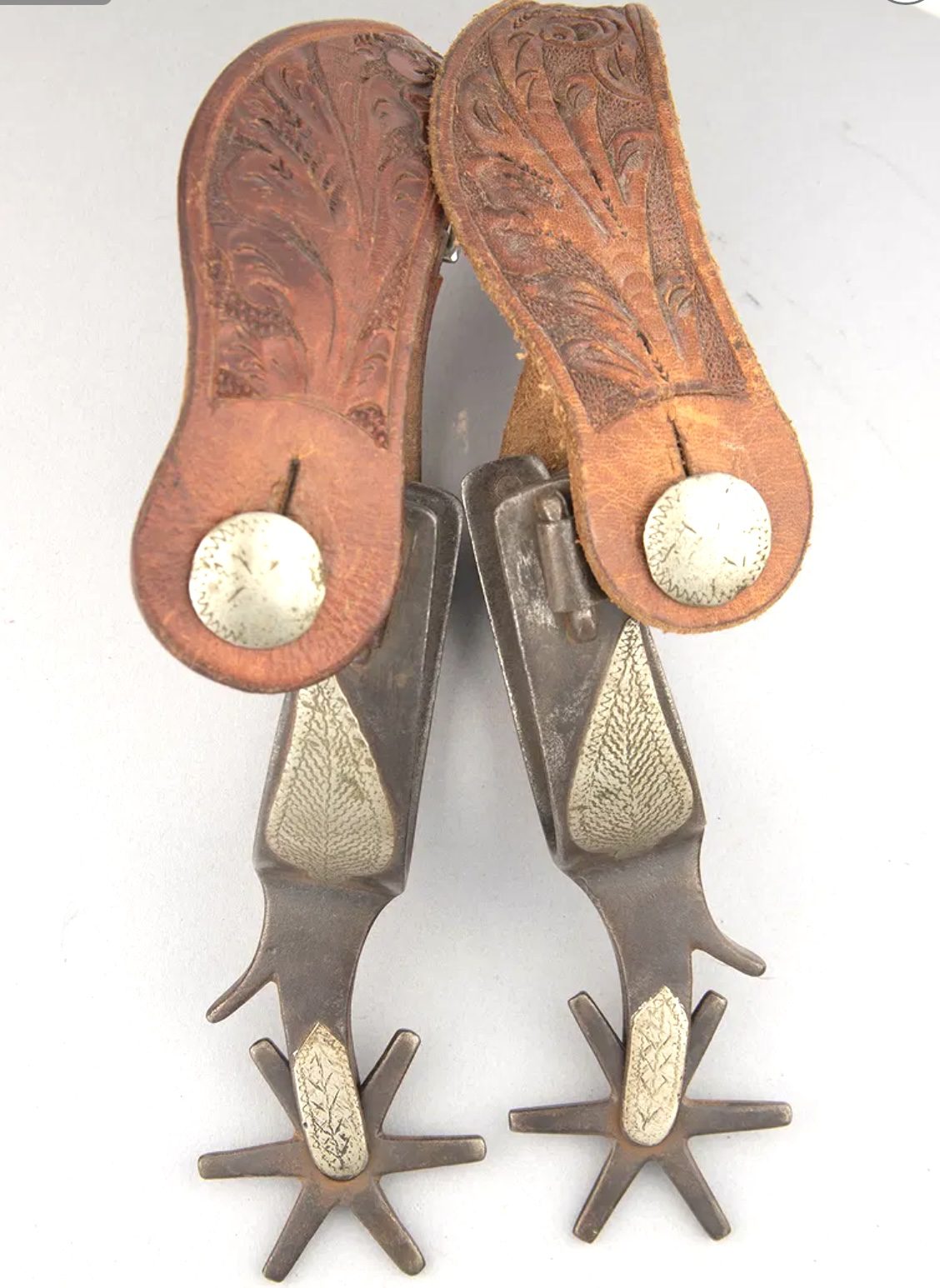 ANTIQUE PRISON SILVER INLAID SPURS.