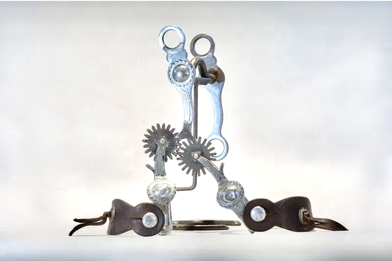 Crockett Renalde marked bit and spur set. Matching set with arrow shank and bit. $1295