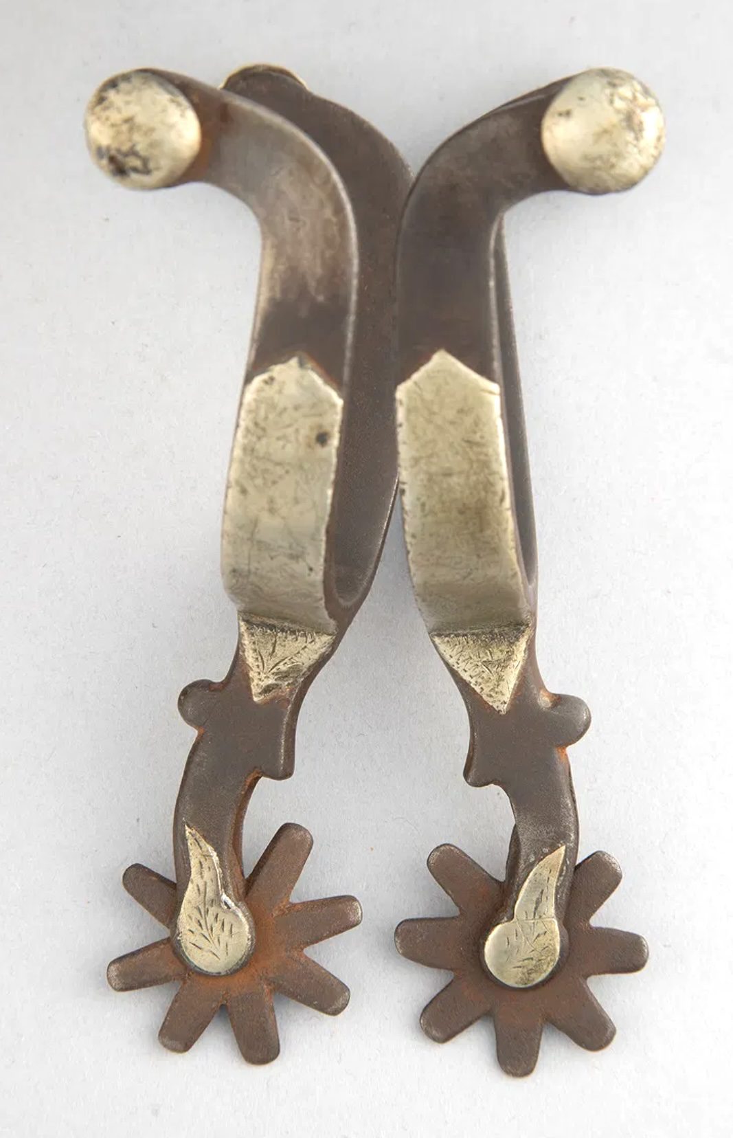 Rare double mounted McChesney spurs with the mark Arm & Hammer. Only a handful of this mark has been seen. $4250
